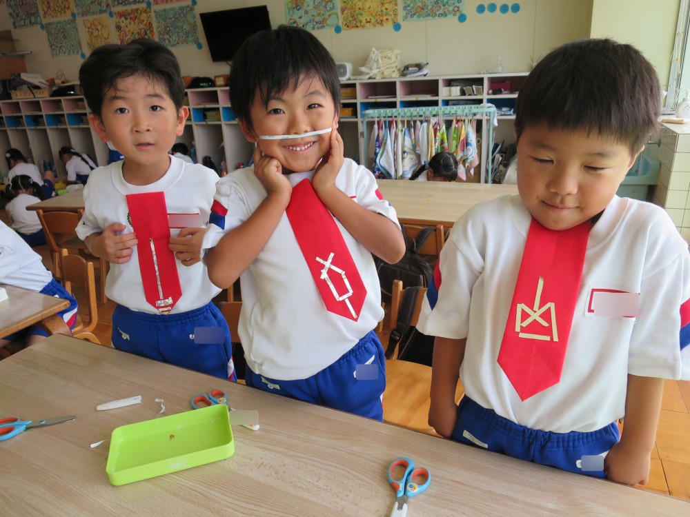 男の子の衣裳はスーツ風。ネクタイのデザインをしました!