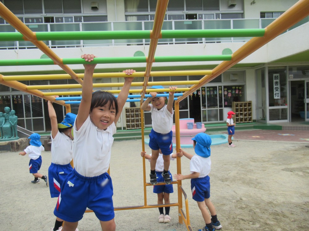 手でつかみ、体をふりこのようにして進みます。手を前に出すことは少し勇気がいるようです![]()