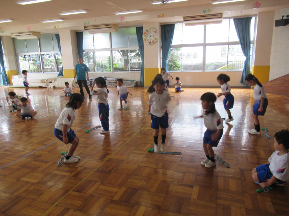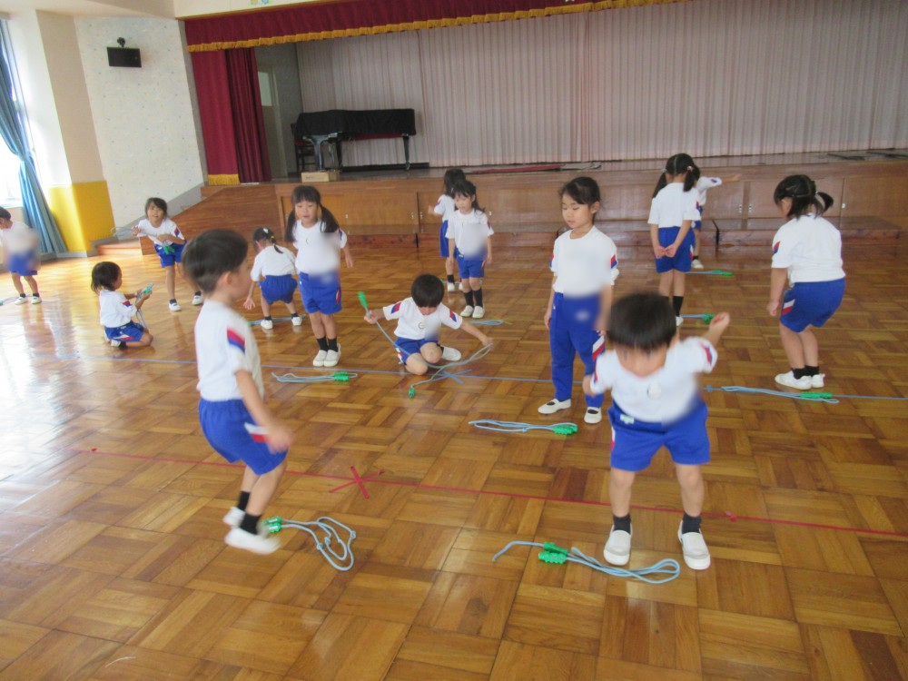 前跳び2跳躍でリズムよく跳べるかな⁈初めは縄が前にきたことを意識してジャンプします。