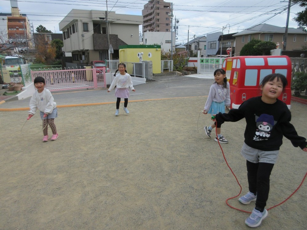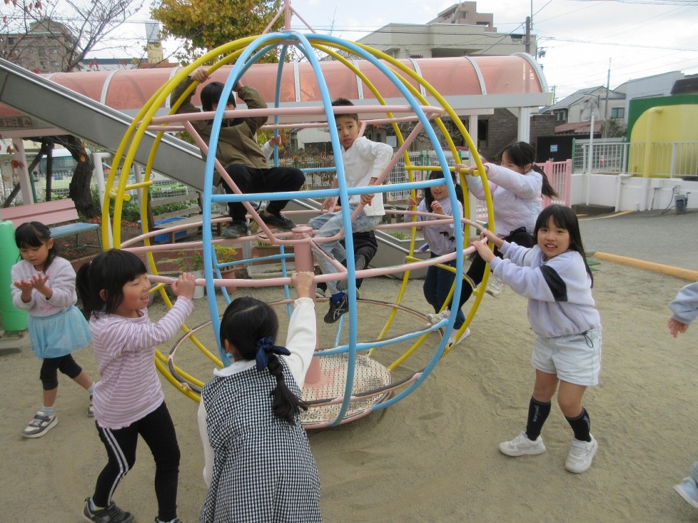 食後は園庭で思いっきり遊びました。みんな楽しそう![]()