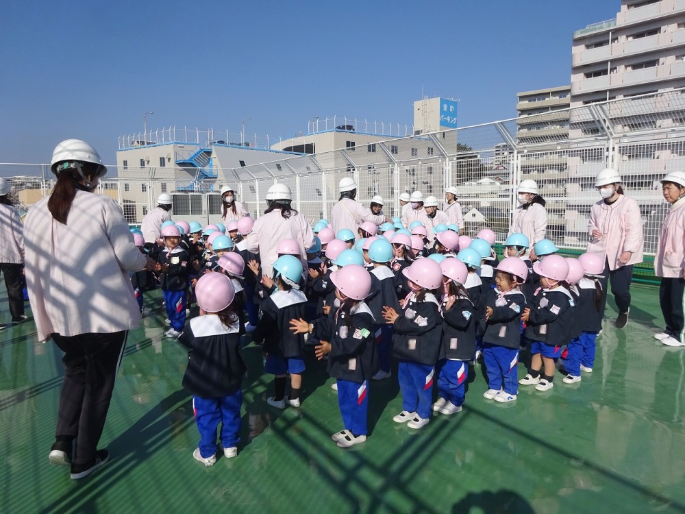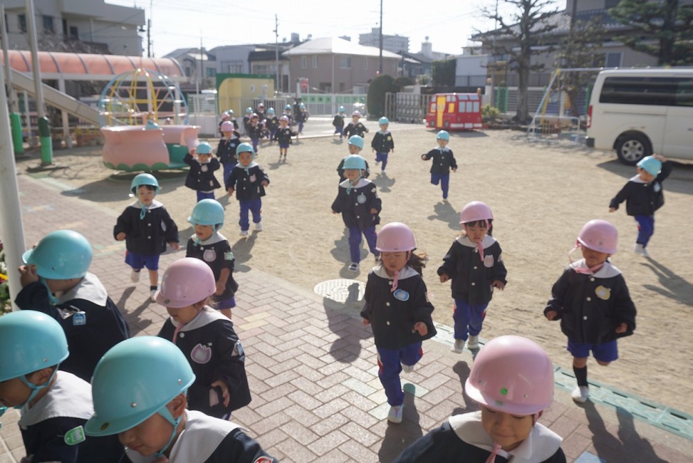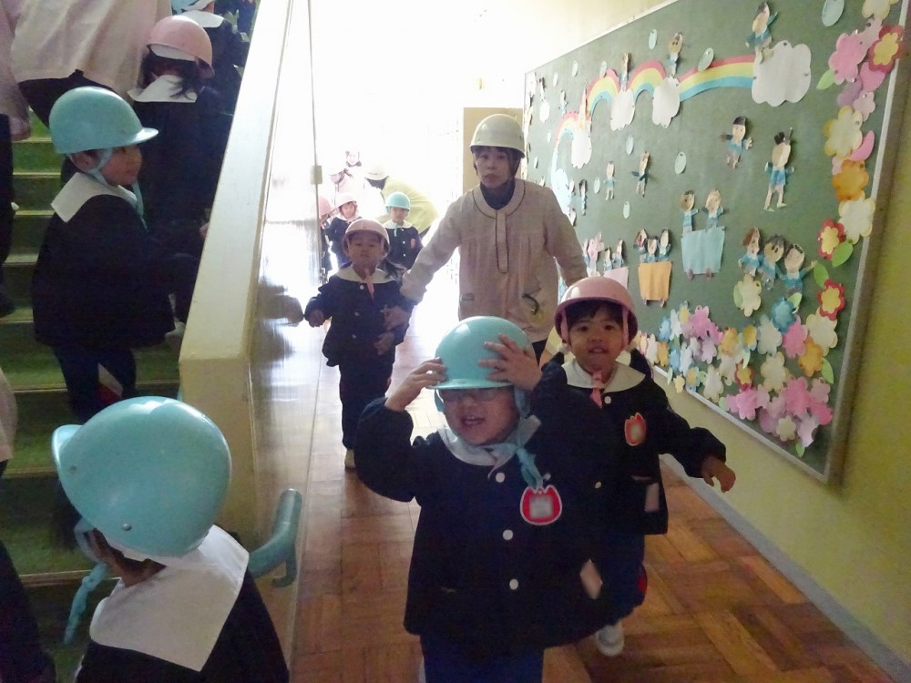 幼稚園では昨日防災訓練を行い、改めて自身で身を守るための約束を確認しました。