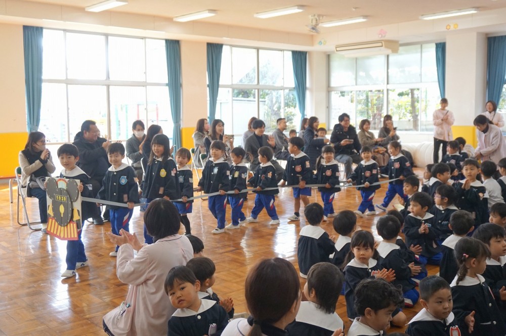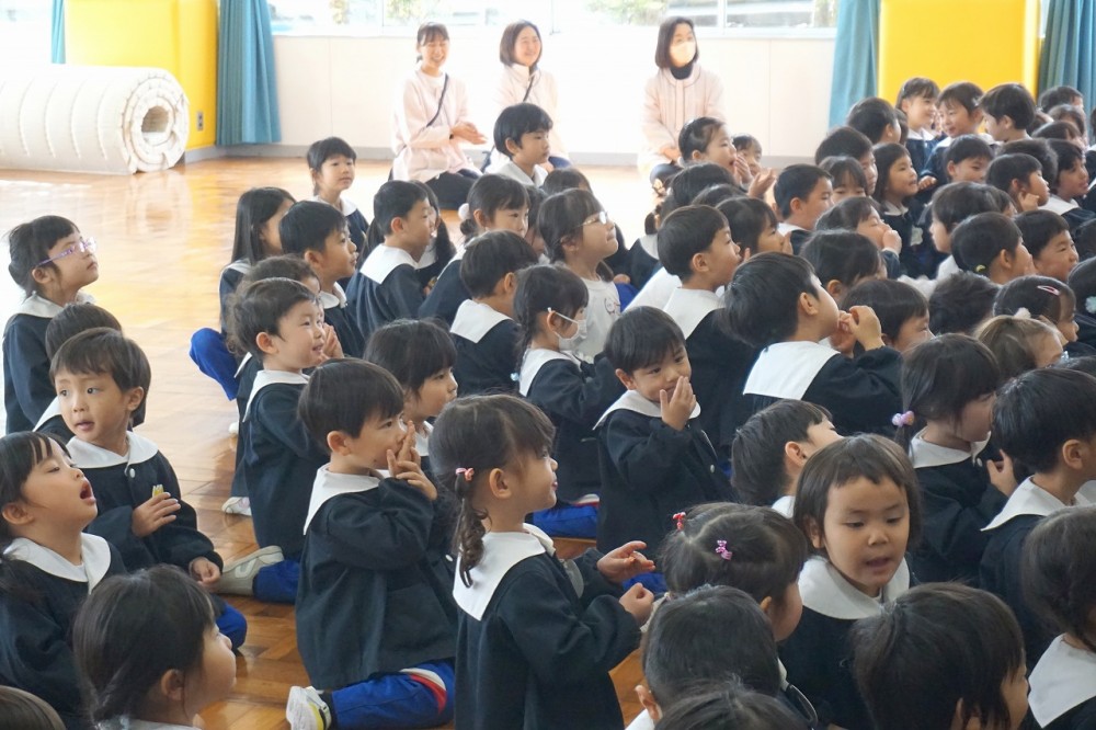 園長先生からの質問「外遊びで好きなことは何ですか?」「3学期頑張りたいことは何ですか?」