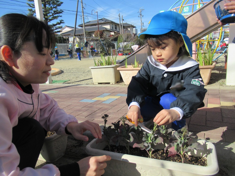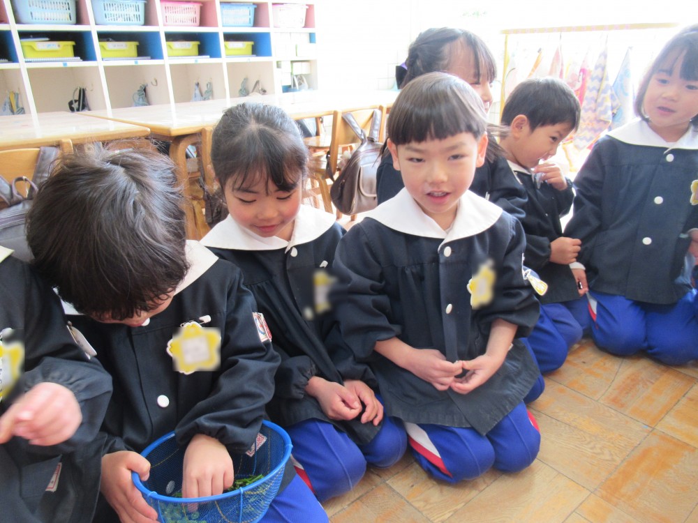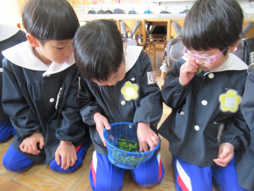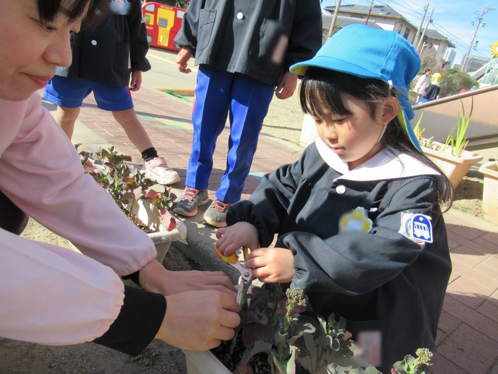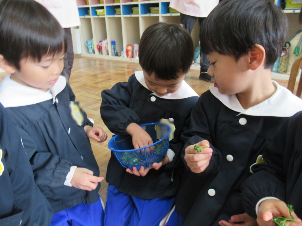幼稚園で育てているスティックセニョール(茎ブロッコリー)やスナップエンドウが収穫の時期を迎えました![]()